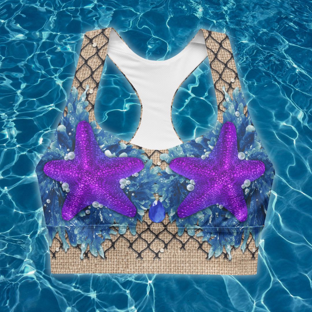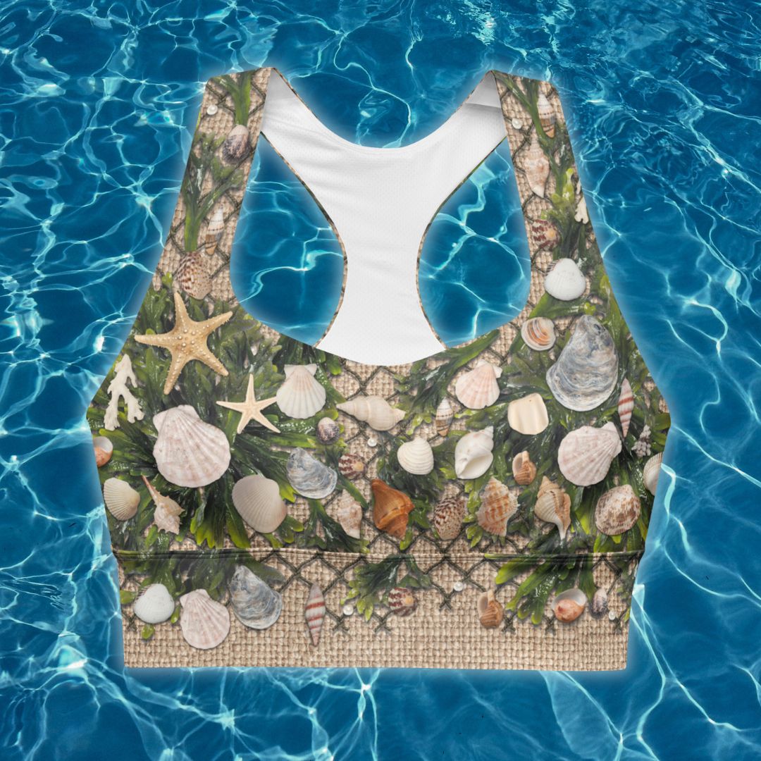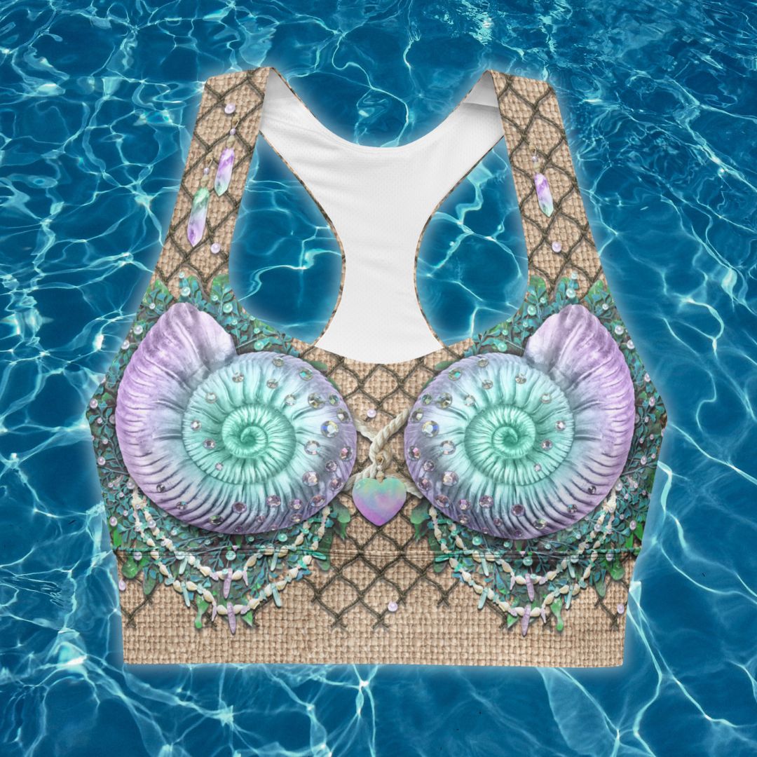 Due to the construction of these tops, the bead/gemstone design under the shells may appear slightly misaligned. This is completely normal due to the fact that these are two separate pieces of fabric sewn together by my manufacturer. I have included an example of the outcome that may be expected in the images section. It is not obvious enough that it takes away from the illusion, but I did want to make sure it was addressed.
